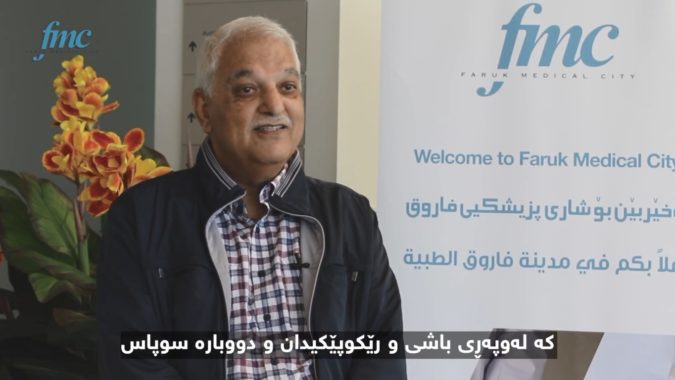 A thank you message from Mr. Mahmoud Mahdi Mahmoud to FMC, who underwent kidney transplant and after recovery, expressed his wish to address a thank you message to the medical staff in at FMC and the hospital administration.